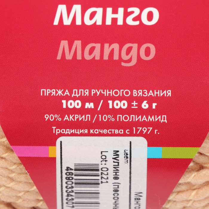 Пряжа "Манго" 90% акрил, 10% полиамид 100м/100гр (5102 мулине (песочный/шампан.))