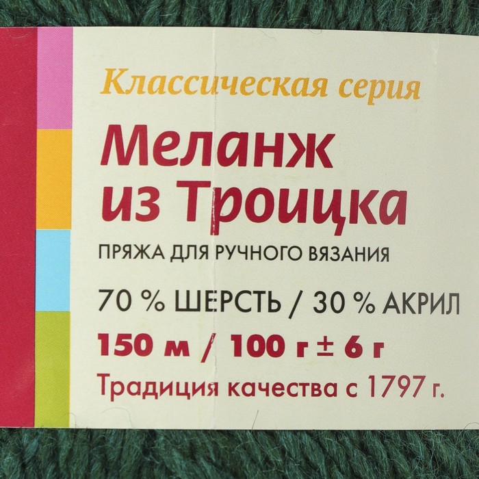 Пряжа "Меланж из Троицка" 70% шерсть, 30% акрил 150м/100гр (8103, меланж (зелёный))