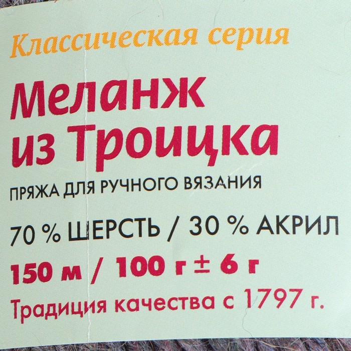 Пряжа "Меланж из Троицка" 70% шерсть, 30% акрил 150м/100гр (8293 меланж кофе)