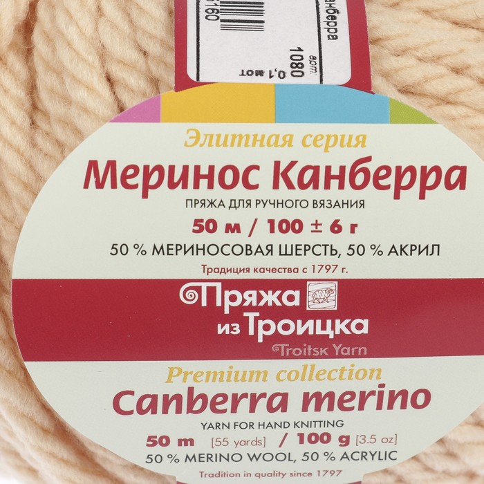 Пряжа "Меринос Канберра" 50% мерин.шерсть, 50% акрил 50м/100гр (1080 шампанское)