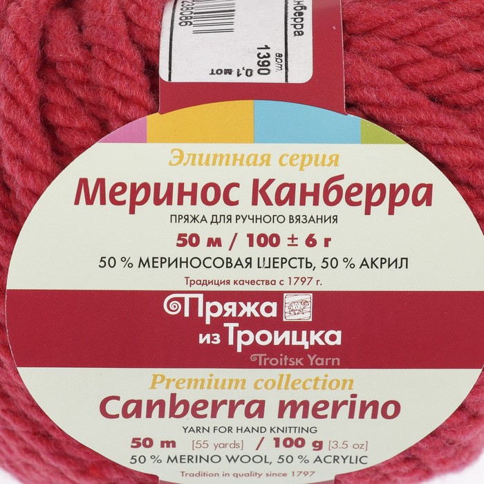 Пряжа "Меринос Канберра" 50% мерин.шерсть, 50% акрил 50м/100гр (1390 коралл)