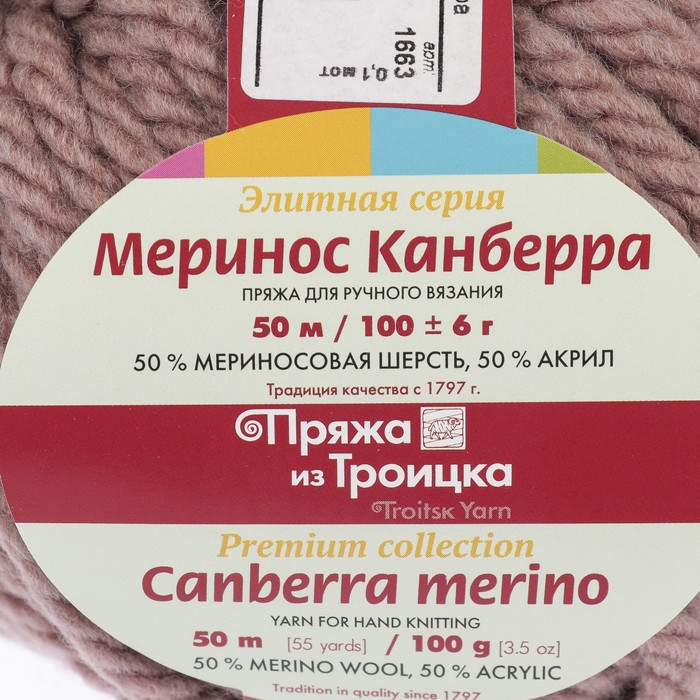 Пряжа "Меринос Канберра" 50% мерин.шерсть, 50% акрил 50м/100гр (1663 св. мрамор)