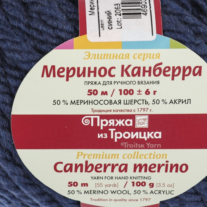 Пряжа "Меринос Канберра" 50% мерин.шерсть, 50% акрил 50м/100гр (3605 синий)