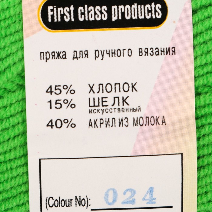 Пряжа "Milk cotton" 45% хлопок, 15% шёлк, 40% акрил, 150м/50гр (024 яр. зелень)