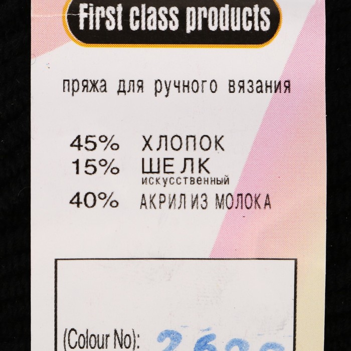 Пряжа "Milk cotton" 45% хлопок, 15% шёлк, 40% акрил, 150м/50гр (2622 чёрный)