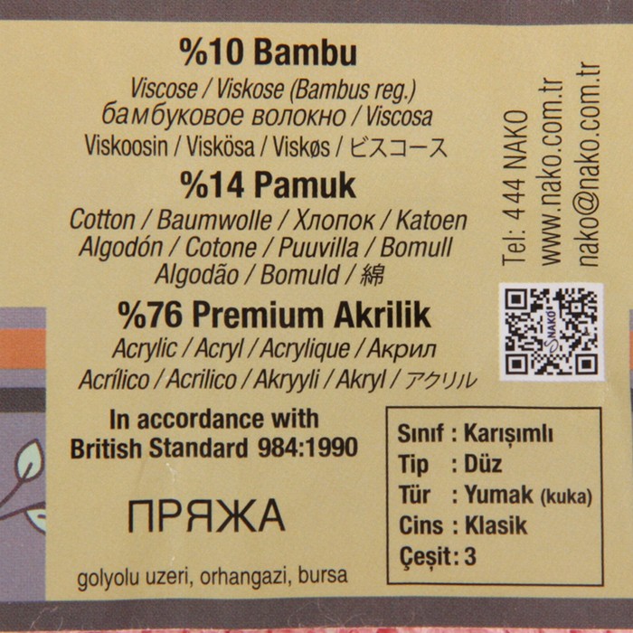 Пряжа "Natural Bebe" 10% бамбук, 14% хлопок, 76% акрил 225м/100г (11622 нильский зеленый)