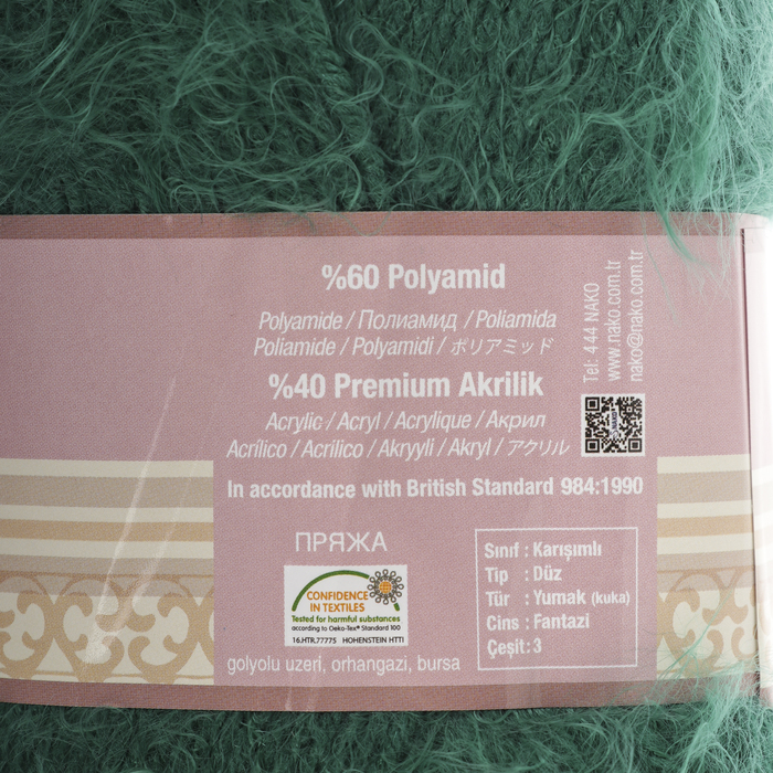Пряжа "Paris" 60% полиамид, 40% акрил 245м/100г (3440 зелёный)