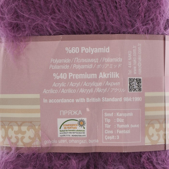 Пряжа "Paris" 60% полиамид, 40% акрил 245м/100г (6499 сирень)