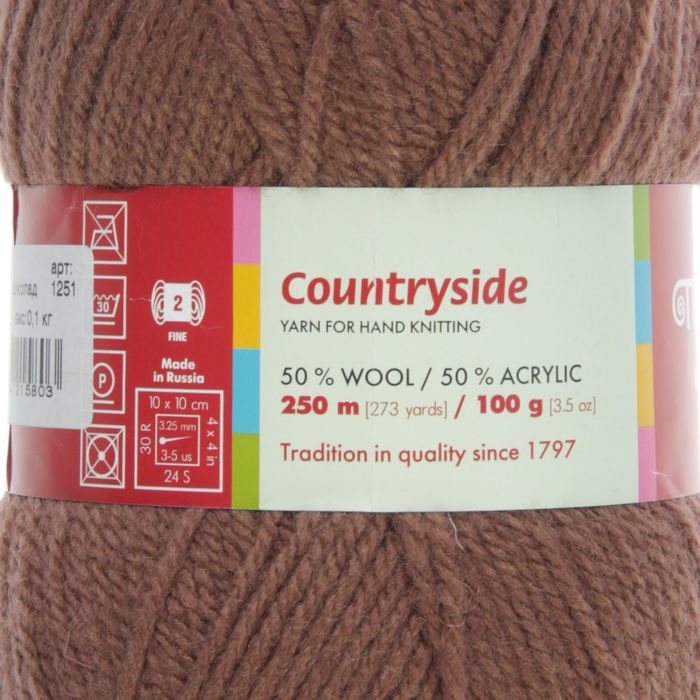 Пряжа "Подмосковная" 50% шерсть, 50% акрил 250м/100гр (1251, мол.шоколад)