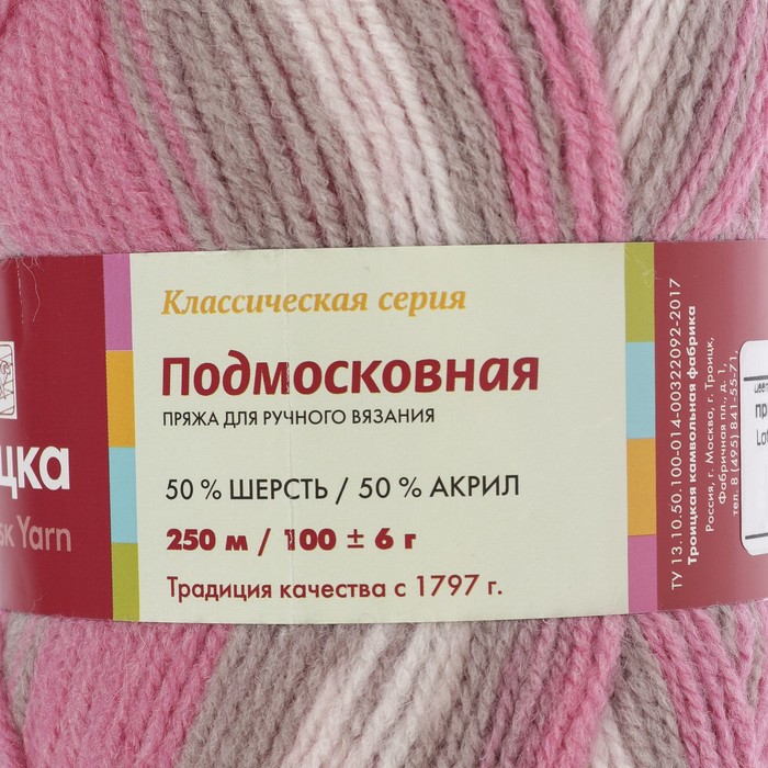 Пряжа "Подмосковная" 50% шерсть, 50% акрил 250м/100гр (7216 принт)