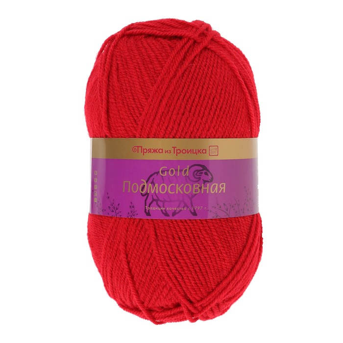 Пряжа " Подмосковная GOLD" 50% шерсть, 50% акрил 250м/100гр (0042 красный)