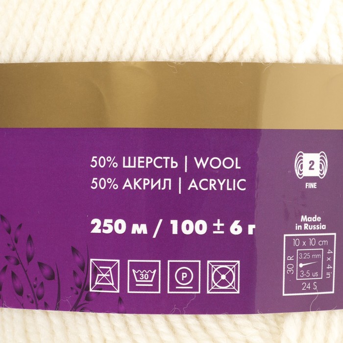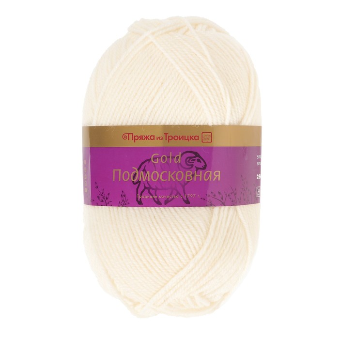 Пряжа " Подмосковная GOLD" 50% шерсть, 50% акрил 250м/100гр (0230 отбелка)
