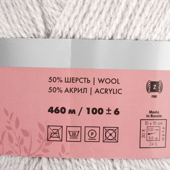 Пряжа " Подмосковная SUPERFINE" 50% шерсть, 50% акрил 460м/100гр (0813 св. сумерки)