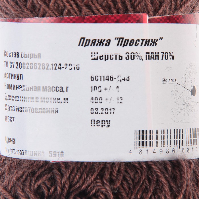Пряжа "Престиж" 30% шерсть, 70% ПАН 400м/100гр (Перу)