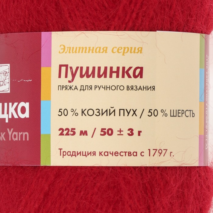 Пряжа "Пушинка" 50% шерсть, 50% козий пух 225м/50гр (0042 красный)