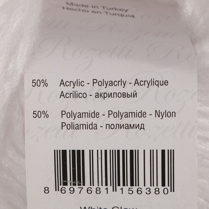 Пряжа "Roma" 50% акрил, 50% полиамид 145м/50гр (01 белый)
