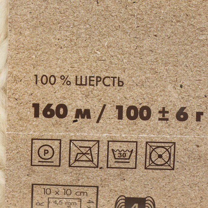 Пряжа "Селена" 100% шерсть 160м/100гр (0770 натуральн. светлый)