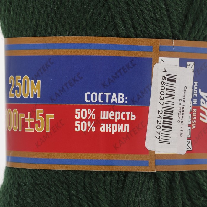 Пряжа "Соната" 50% имп. п/т шерсть 50% акрил 250м/100гр (110 зеленый)