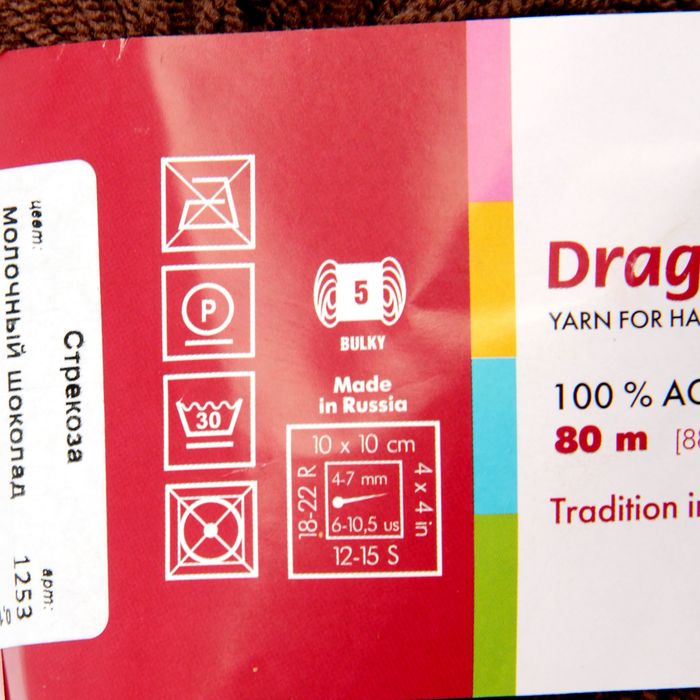 Хорошая высокообъёмная пряжа из 100% акрила выполнена из тонких нитей довольно тугой крутки. Благодаря этому она выглядит необычно и замечательно держит узор, создавая рельеф рельеф. Отметим, что пряжа обладает «амортизирующими» свойствами. Она универсальная — ведь с таким сырьём опытные рукодельницы даже не используют спицы или крючок, нужны лишь только руки. Пряжа экономична, ведь нить толстая и объёмная!