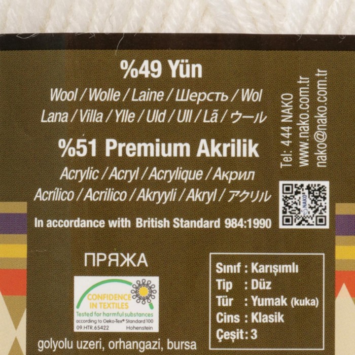 Пряжа "Superlambs special" 49% шерсть, 51% премиум акрил 200м/100гр (208 белый)