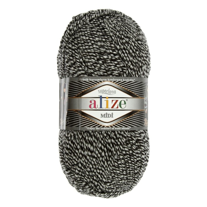 Пряжа "Superlana midi" 25% шерсть, 75% акрил 170м/100гр (DUE 601 сер-черн)