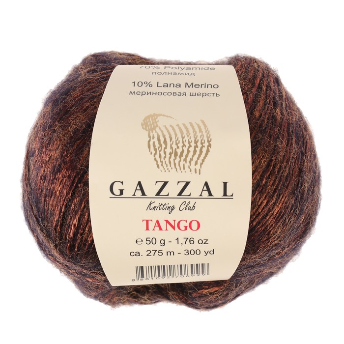 Пряжа "Tango" 10%меринос. шерсть,20%полиакрил, 70%полиамид 275м/50гр (1476 коричневый)