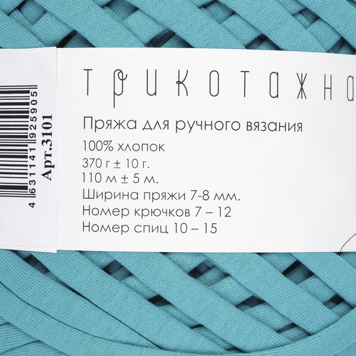 Пряжа трикотажная "Бейка стиль" 110м/370гр , ширина 7-9 мм (3101 морск. волна)