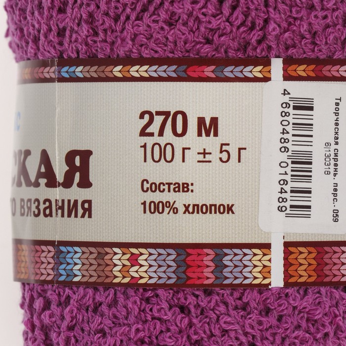 Пряжа "Творческая" 100% хлопок 270м/100гр (059 перс. сирень)
