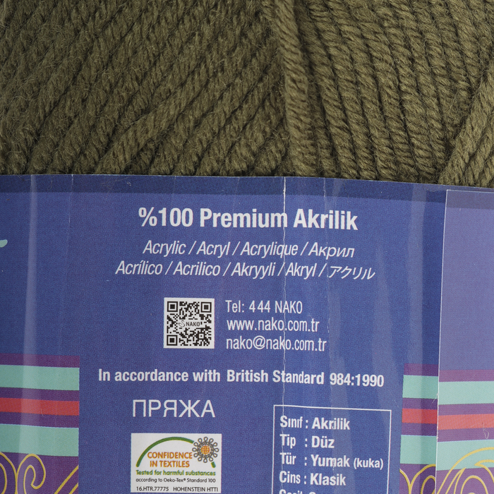 Пряжа "Vega" 100% премиум акрил 195м/100гр (1989 хаки)