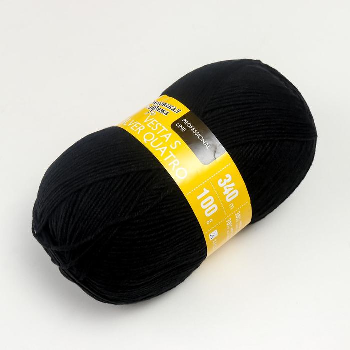 Пряжа Vesta S silver quatro 30% имп.шерсть, 70% акрил 340м/100гр (70001 черный_v2)
