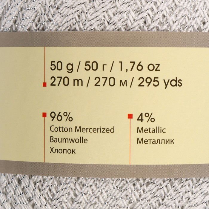 Пряжа "Violet lurex" 96% хлопок, 4% металлик 270м/50гр (1000 белый с серебром)