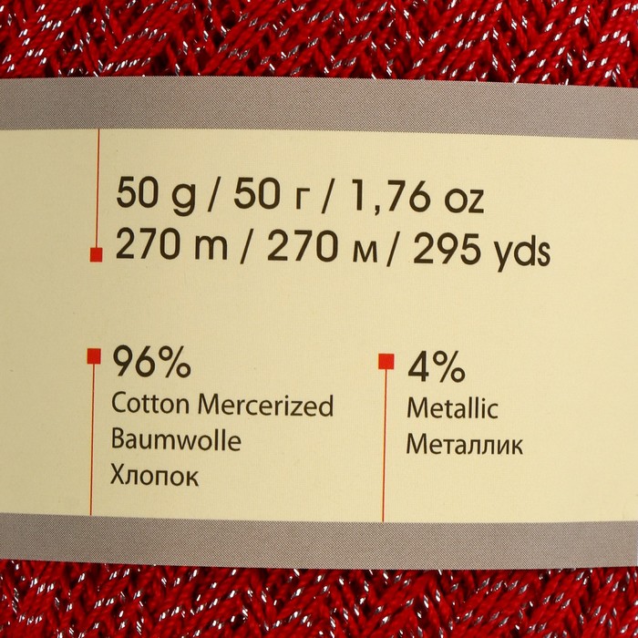 Пряжа "Violet lurex" 96% хлопок, 4% металлик 270м/50гр (15020 красный с серебром)