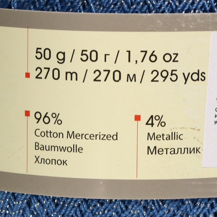 Пряжа "Violet lurex" 96% хлопок, 4% металлик 270м/50гр (15351 т-голубой)