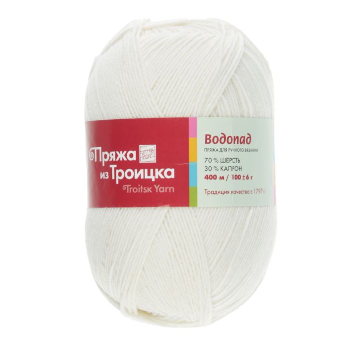 Пряжа "Водопад" 70% шерсть, 30% капрон 400м/100гр (0230, отбелка)