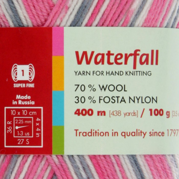 Пряжа "Водопад" 70% шерсть, 30% капрон 400м/100гр (7068, принт)