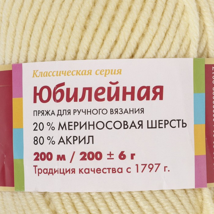 Пряжа "Юбилейная" 20% меринос.шерсть, 80% акрил 200м/200гр (1080 шампанское)