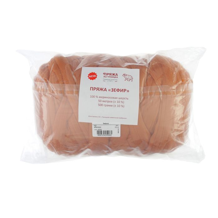 Пряжа "Зефир" 100% мериносовая шерсть 50м/500гр (2212, абрикос)