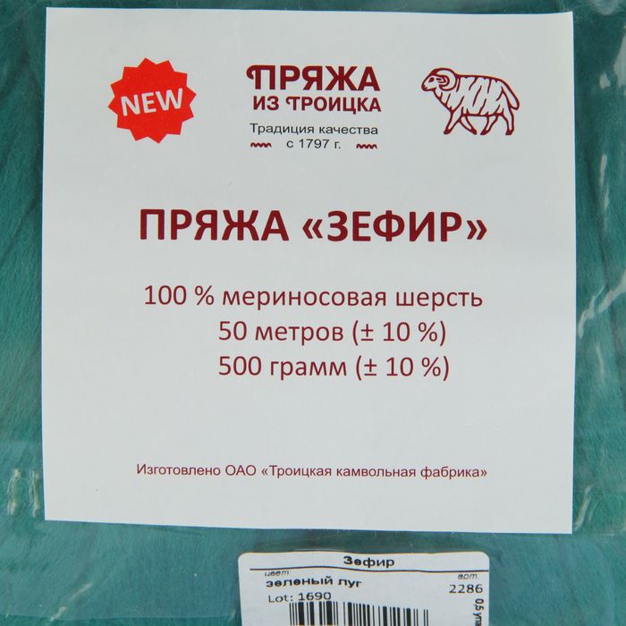 Пряжа "Зефир" 100% мериносовая шерсть 50м/500гр (2286, зеленый луг)