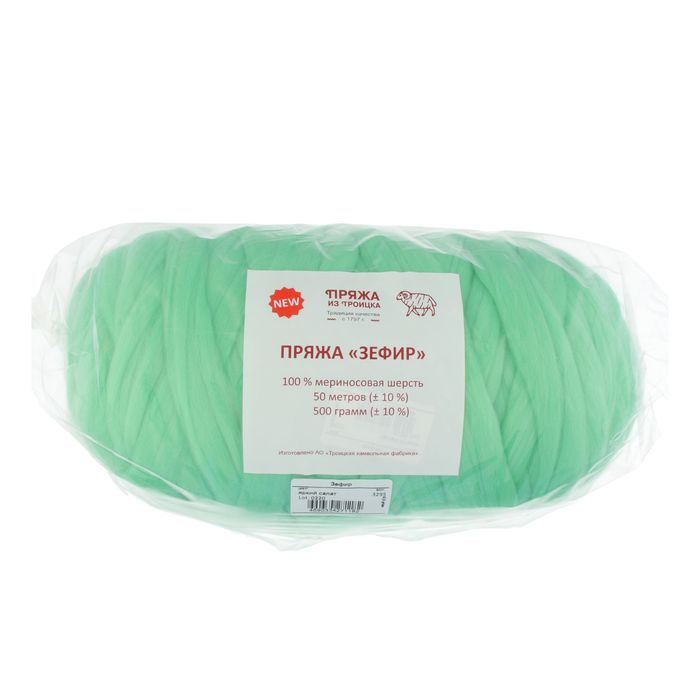 Пряжа "Зефир" 100% мериносовая шерсть 50м/500гр (3295, ярк.салат)