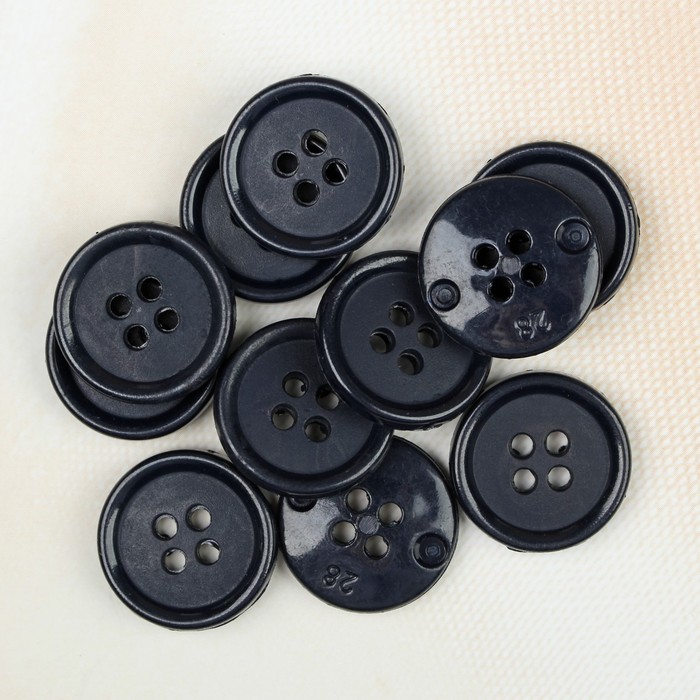 Пуговица, 4 прокола, плоская, 18мм, цвет тёмно-синий