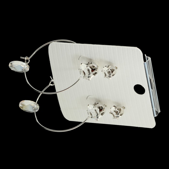 Бижутерия — самый простой и ненавязчивый способ подчеркнуть своё особенное чувство стиля, не тратя при этом много времени и усилий. Наденьте Пусеты 3 пары "Кольца" с кристаллом, цвет белый в серебре, собираясь на работу, учёбу, прогулку или романтическое свидание, и будьте уверены в своей неотразимости!