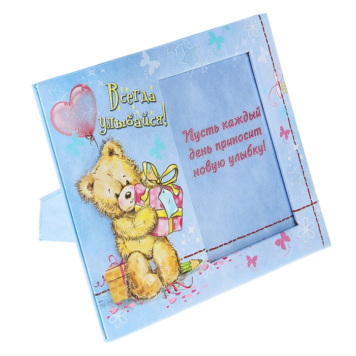 Рамка для фото 8,5 х 12,5 см "Всегда улыбайся" - это не только уникальный предмет интерьера, но и маленький хранитель самых ярких воспоминаний, запечатленных на снимках. Эксклюзивный дизайн, впитавший в себя нежную цветовую гамму, принт с изображением милого плюшевого мишки, а также оригинальную форму, делает изделие неповторимым, способным стать декоративной «изюминкой» вашего дома.