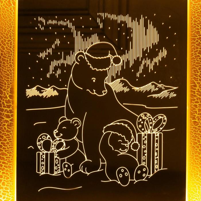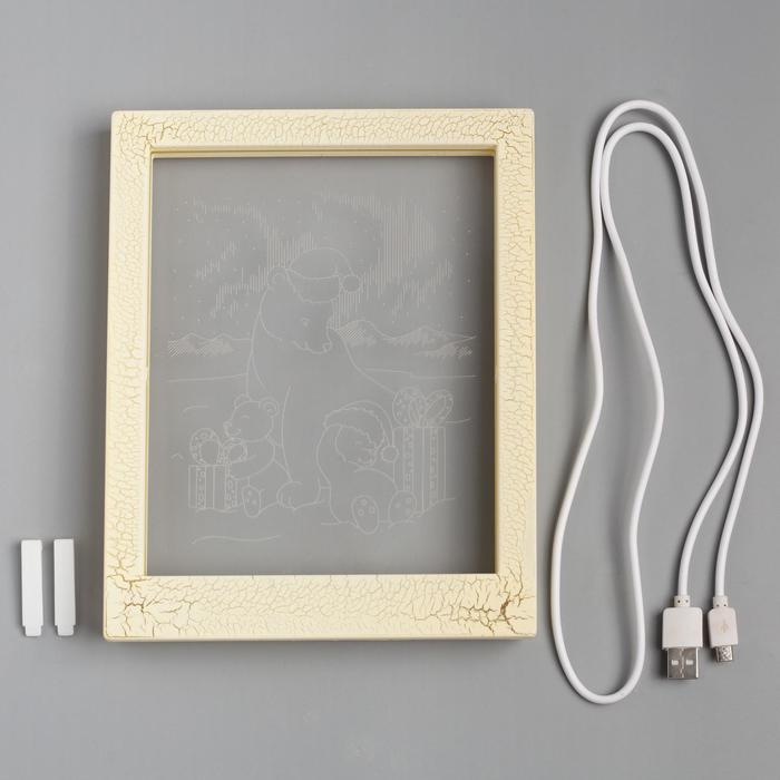 Рамка светящаяся, "Мишки" 13,5 х 17 см, USB, 5V , 10 LED, ТЕПЛО-БЕЛЫЙ