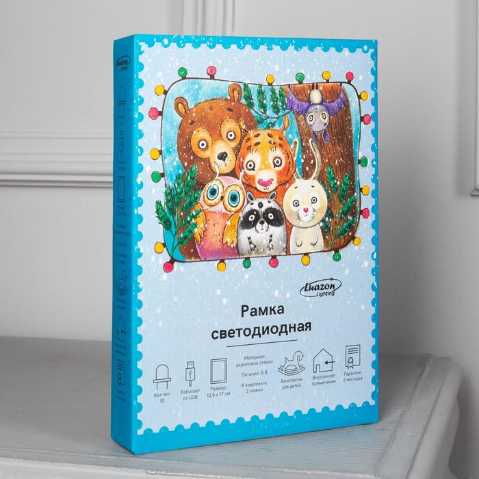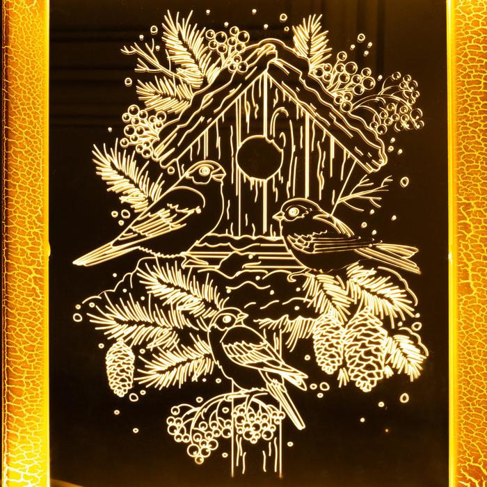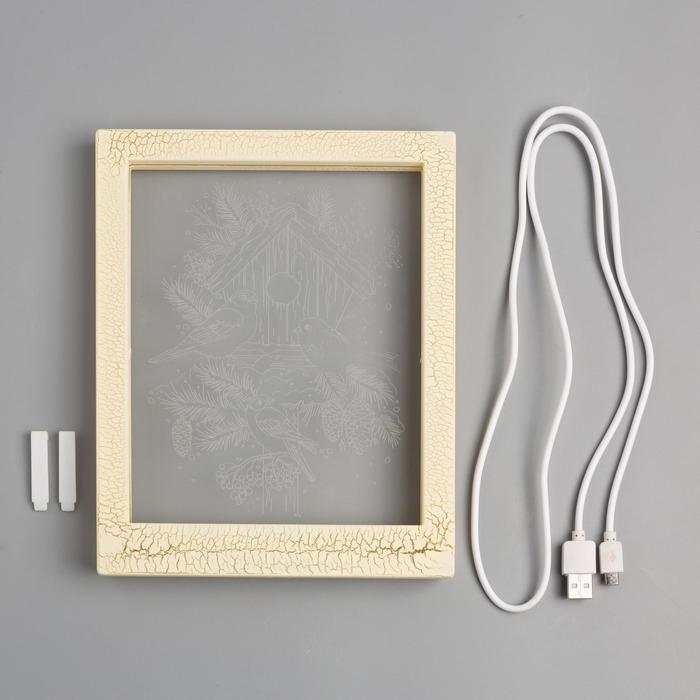 Рамка светящаяся, "Снегири" 13,5 х 17 см, USB, 5V, 10 LED, ТЕПЛО-БЕЛЫЙ
