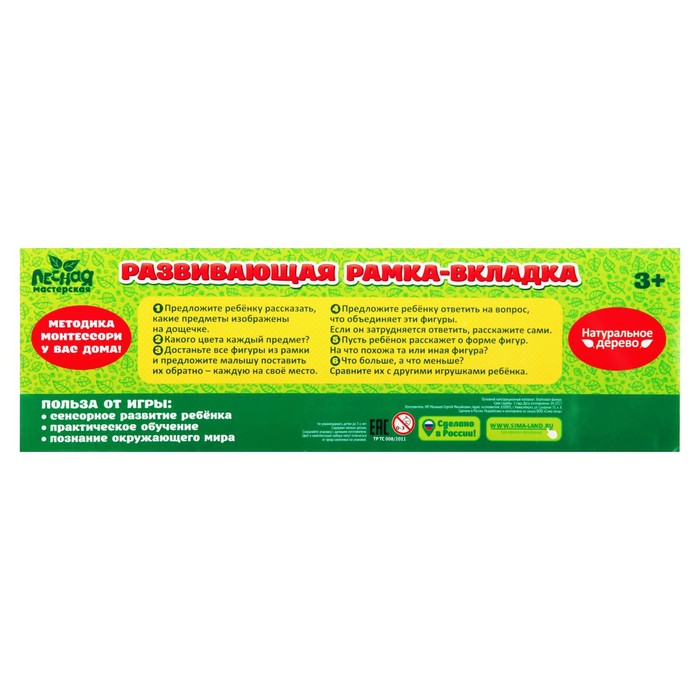 Во время занятий с рамкой-вкладышем предложите ребёнку дополнительные задания, например называть цвет каждой детальки. Варианты вопросов вы найдёте на упаковке изделия.