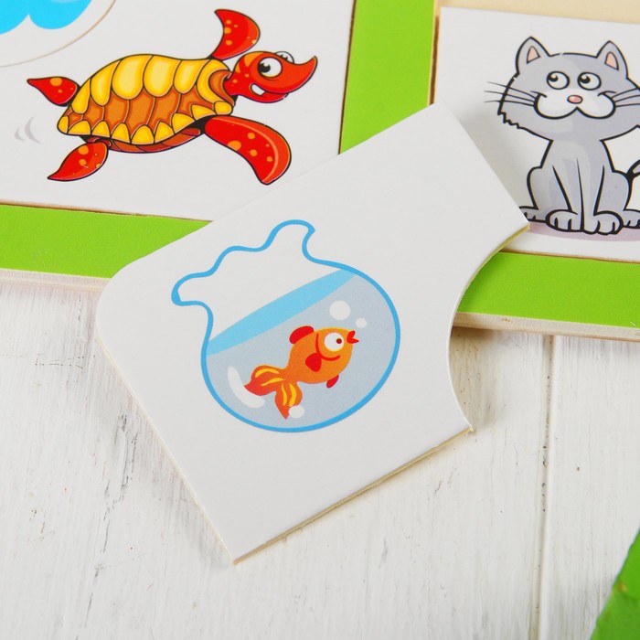 Разноцветная головоломка познакомит кроху с разными стихиями. Обсудите с чадом, где обитают животные и птицы, изображённые на картинках, распределите элементы в рамке. Предложите ребёнку поискать примеры в окружающем мире!