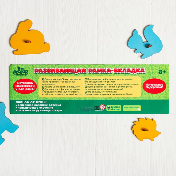 Во время занятий с рамкой-вкладышем предложите ребёнку дополнительные задания, например называть цвет каждой детальки. Варианты вопросов вы найдёте на упаковке изделия.
