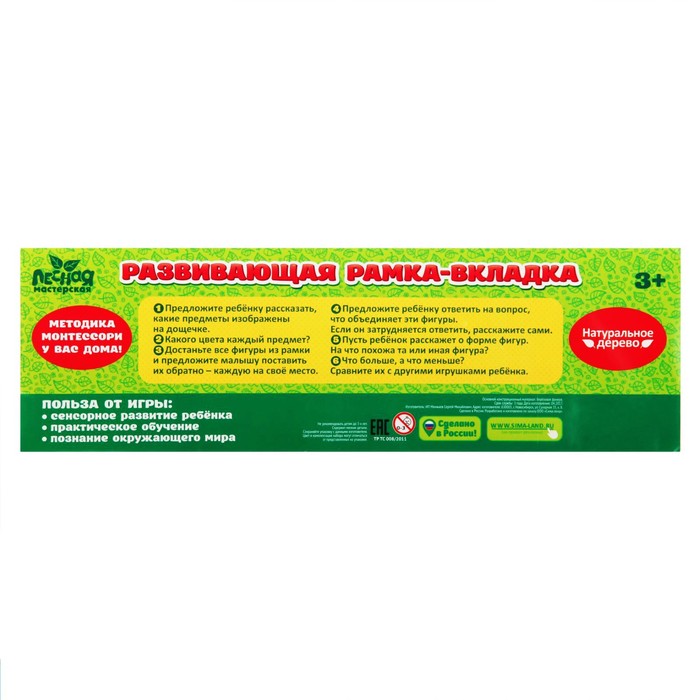 Во время занятий с рамкой-вкладышем предложите ребёнку дополнительные задания, например называть цвет каждой детальки. Варианты вопросов вы найдёте на упаковке изделия.
