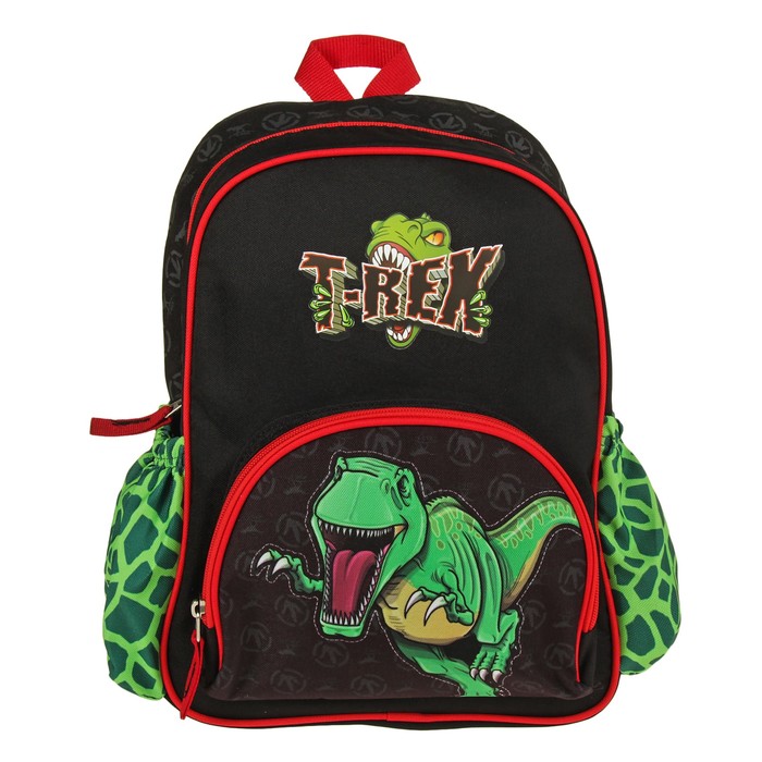 Ранец на замке Target 40*31*24 мал наполнением "Динозавр Тирекс" 5 пред, черный/зелен