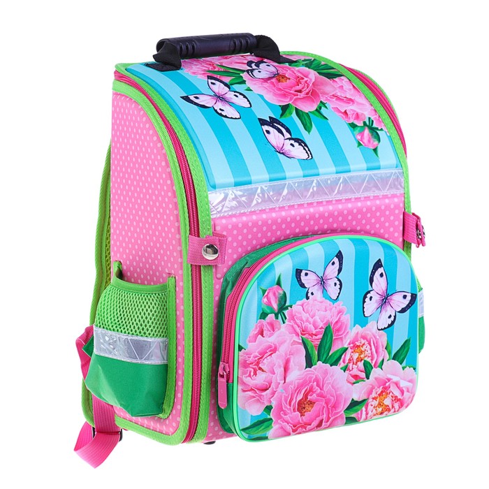 Ранец школьный каркасный с ортопедической спинкой 35*26*16 см 2 отделения 3 кармана «Цветы»